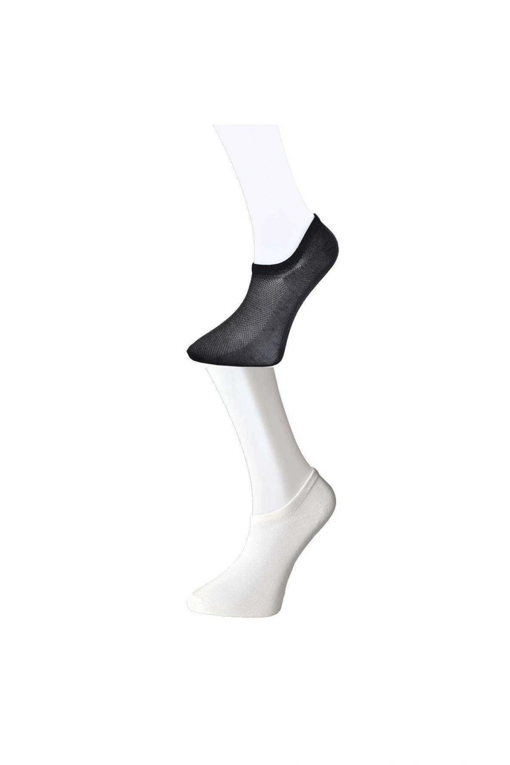 Siyah Ve Beyaz Erkek Görünmez Çorap 3 Çift