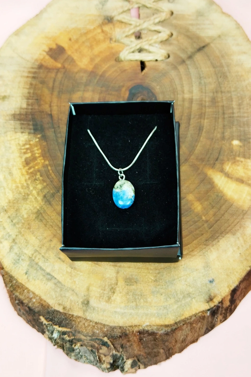 Sodalit Doğal Taşı Zincirli El Yapımı Kolye Uç: 1,5 cm Zincir: 20 cm Kutulu