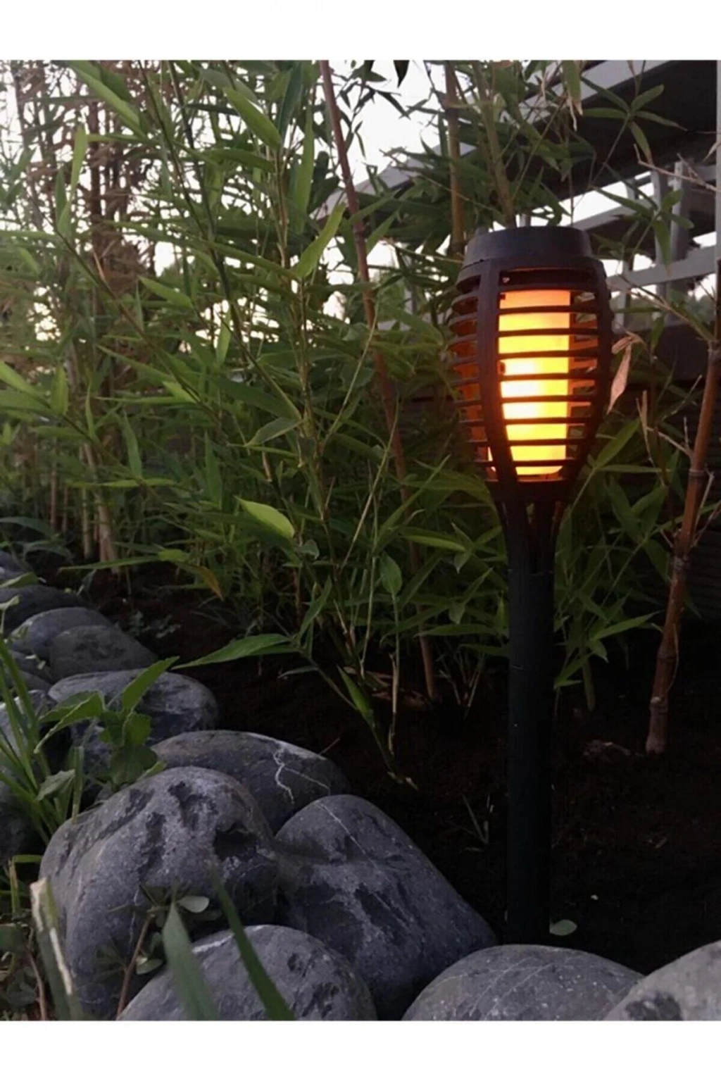 • SOLAR ALEV EFEKTLİ BAHÇE LAMBASI Solar Alev Efektli Bahçe Lambası, toprağa saplanabilen altındaki kazıklar sayesinde bahçe veya açık alanlarda kullanım için idealdir. Aynı zamanda, kazıkları çıkartılarak masaüstünde ya da farklı zeminlerde de ku