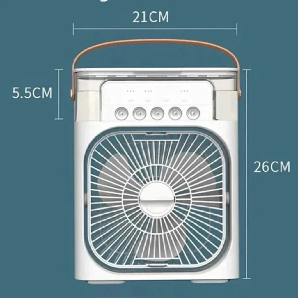 SU HAZNELİMASA VANTİLATÖRÜÜrün Özellikleri 21 cm genişliğinde, 26 cm yüksekliğinde ve 5.5 cm derinliğinde olan su hazneli masa vantilatörü, hem serinletici hem de nemlendirici özelliğiyle yaz aylarında ferah bir ortam sunar. Üst kısmındaki 600 ml kapasiteli su haznesi musluk suyu ile doldurulabilir, istenirse buz da eklenerek daha serin bir etki elde edilebilir. Aynı anda 5 noktadan buhar püskürtme fonksiyonu ile geniş alanlarda etkili nemlendirme sağlar. 1 sprey ile 12 saat, 3 sprey ile 4 saat ve 5 sprey açıkken 2.5 saat kesintisiz çalışır. Taşıma sapı sayesinde kolayca taşınabilir. USB kablo ile çalışır ve farklı iç mekânlarda kullanıma uygundur. Klima gibi kuru hava yaratmaz, ortamın nem dengesini korur. Özellikle ev, ofis, yatak odası ve bebek odası gibi alanlarda tercih edilir. Paket İçeriği 1 Adet Su Hazneli masa Vantilatörü