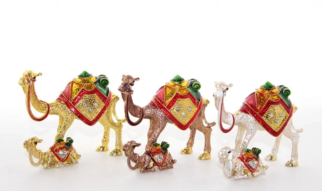 • SWAROVSKİ YAVRULU DEVE MODEL 3Ürün ÖzellikleriSwarovski Yavrulu Deve Model 3, 7x9 cm boyutunda olup zarif ve otantik tasarımıyla dekoratif aksesuar olarak öne çıkar. Swarovski taşlarla süslenmiş detayları, metal gövde ve emaye kaplama ile tamamlanara