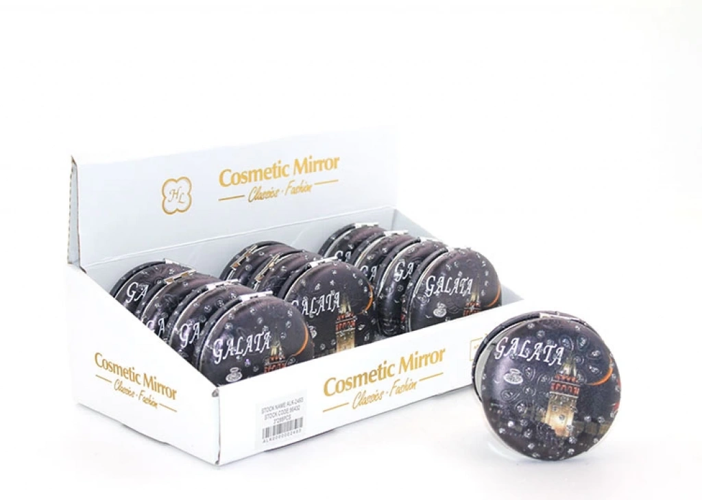 • TAŞLI İSTANBUL TASARIMI EL AYNASI KALIN MODEL 6Ürün ÖzellikleriTaşlı İstanbul Tasarımı El Aynası Kalın Model 6, yuvarlak tasarım ve Galata Kulesi baskılı estetik bir üründür. Taşlı detaylar, aynanın yüzeyine zarif bir parlaklık katarken, Galata Kules