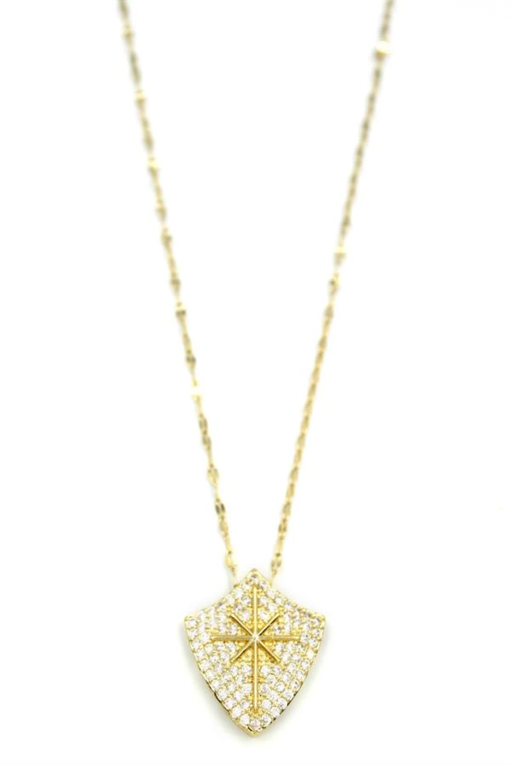 HarmonyAura Zirkon Taşlı Kutup Yıldızı Model Pirinç Gold Renk Kadın Kolye