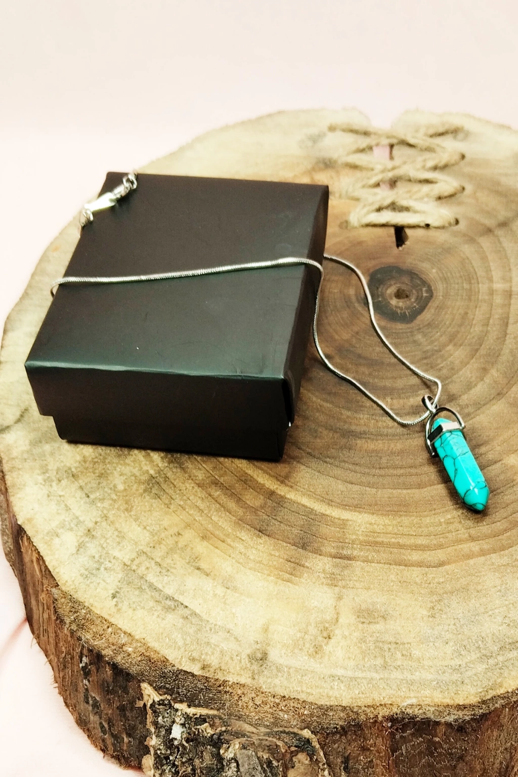 Turkuaz Doğal Taşı Zincirli El Yapımı Kolye Uç: 3 cm Zincir: 20 cm Kutulu