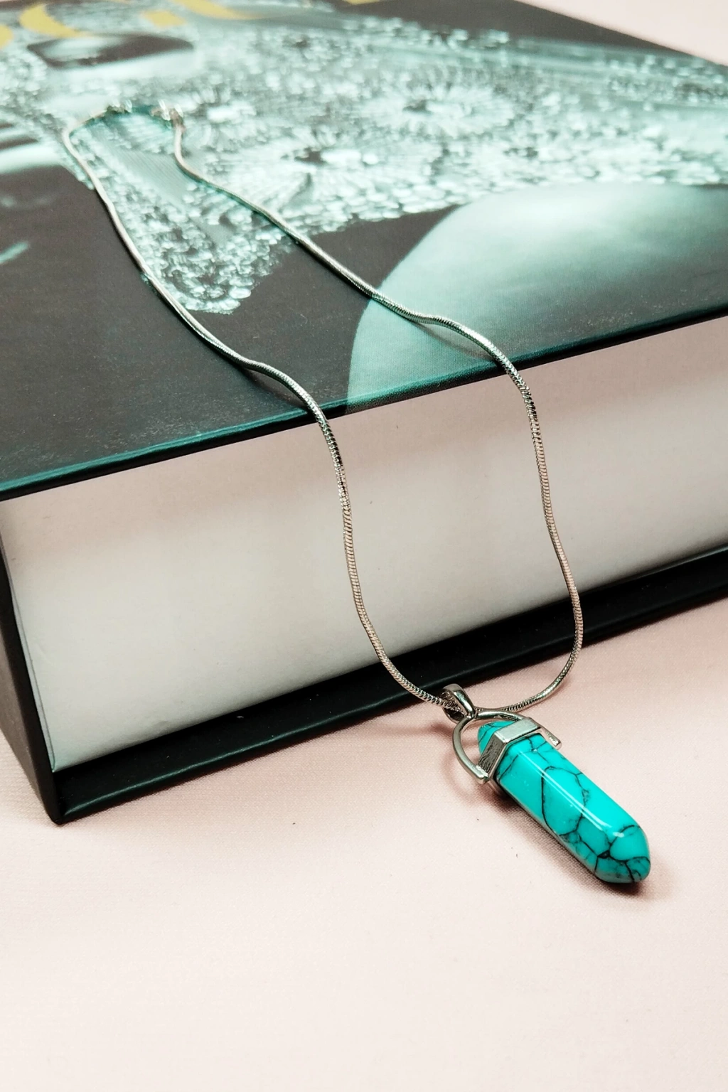 Turkuaz Doğal Taşı Zincirli El Yapımı Kolye Uç: 3 Cm Zincir: 20 Cm Kutulu