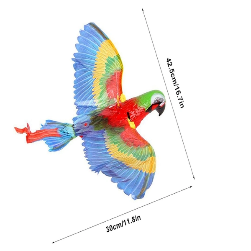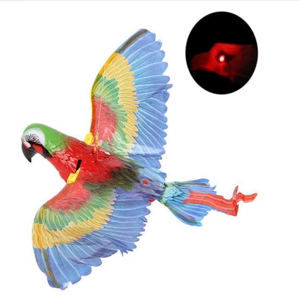 Uçan Papağan Kedi OyuncağıÜrün Özellikleri Bird Flying Cat Toy kediler için eğlenceli bir oyun deneyimi sunar. Dayanıklı PP ve kanvas malzemeden üretilmiştir. Açma düğmesi aktif hale getirildiğinde gözlerinden kırmızı ışık yayar ve ağzından ses çıkararak kedilerin ilgisini çeker. Hafif yapısı ve müzikli tasarımı sayesinde evcil dostlarınız için uzun süreli keyifli bir oyun arkadaşıdır. Kanat ölçüleri modele göre farklılık göstermektedir; kartal modeli 43x25 cm, papağan modeli ise 42,5x30 cm ölçülerindedir. Ürün, 2 adet AA pil ile çalışır (piller pakete dahil değildir). Ayrıca ürün ile birlikte askı teli de bulunmaktadır. Paket İçeriği 1 x Asılabilir Kapı Kedisi Oyuncağı 1 x Askı Teli