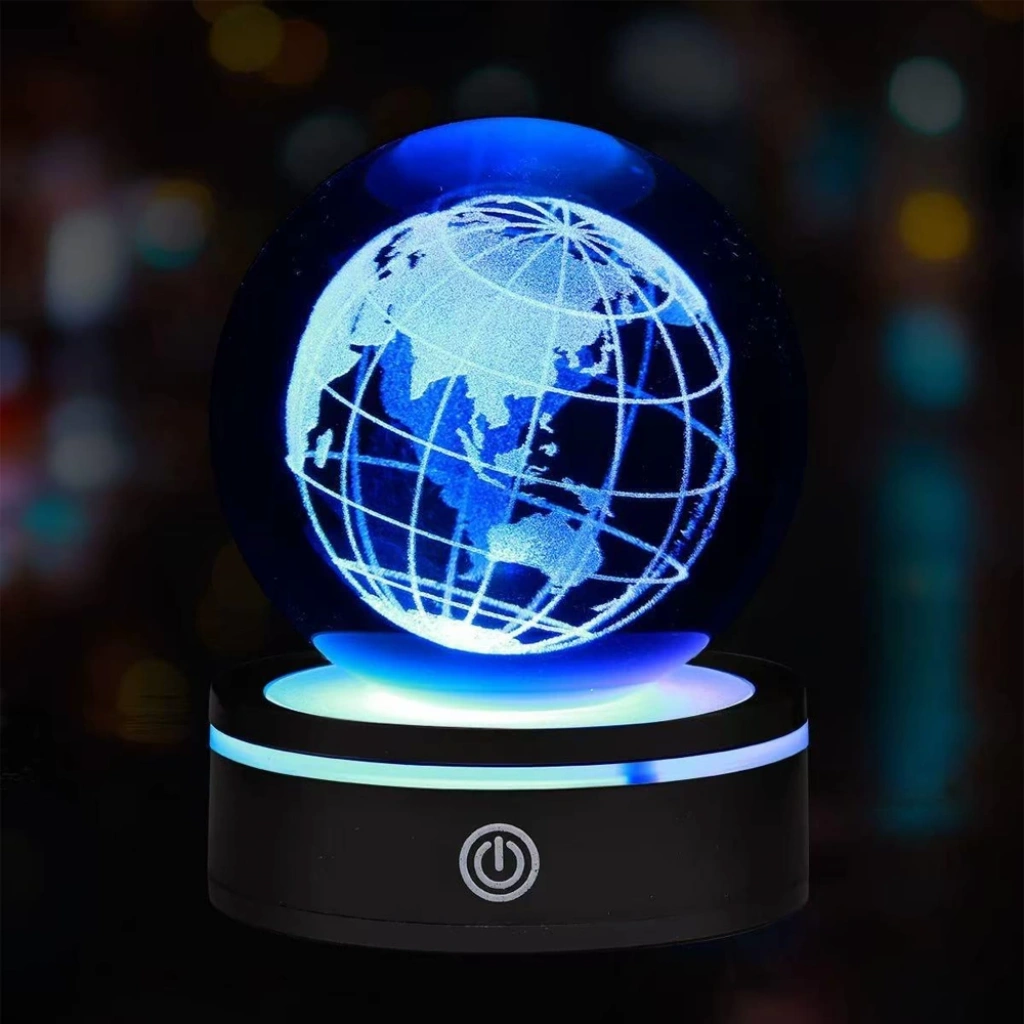 USB'Lİ DÜNYA TASARIMLI DÖNEN CAM KÜRE Ürün Özellikleri USB'li dünya tasarımlı dönen cam küre, modern tasarımı ve göz alıcı LED aydınlatması ile hem dekoratif hem de işlevsel bir masa aksesuarıdır. Yüksek kaliteli cam malzemeden üretilmiş küre, 8 cm çapındadır ve dünya haritası tasarımıyla estetik bir görünüm sunar. 5 cm x 8.5 cm boyutlarındaki dayanıklı plastik standı, dokunmatik kontrol düğmesi ile donatılmıştır. Düğmeye basarak farklı renklerde ışık geçişi yapabilir veya tek bir rengi sabitleyebilirsiniz. USB bağlantısı sayesinde priz veya bilgisayar üzerinden kolayca çalıştırılabilir. Ofis, ev veya hediye olarak kullanıma uygun olan bu ürün, hem şık hem de dikkat çekici bir tasarıma sahiptir. Paket İçeriği 1 adet USB’li dünya tasarımlı dönen cam küre