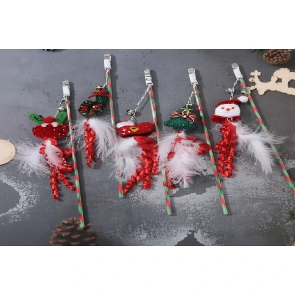 YILBAŞI TEMALI ZİLLİ KEDİ OYUN OLTASIÜrün Özellikleri Yılbaşı Temalı Zilli Kedi Oyun Oltası, kedinizin oyun saatlerini daha eğlenceli ve hareketli hale getirmek için özel olarak tasarlanmış sevimli bir oyuncaktır. Yılbaşı ruhunu yansıtan renkli süslemeler, tüy detayları ve zilli yapısı sayesinde kedinizin dikkatini anında çeker ve içgüdüsel avlanma reflekslerini harekete geçirir. Ürünün hafif ve esnek çubuk yapısı, kedinizle etkileşimli bir şekilde oyun oynamanıza olanak tanırken, uzun süreli kullanımda bile rahat bir tutuş sağlar.Zil sesi, tüylerin hareketi ve sallanan sevimli yılbaşı figürleri kedinizin merak duygusunu artırarak sürekli oyun isteği uyandırır. Dayanıklı malzemelerden üretilmiş olması, yoğun çekiştirmelere ve zıplamalara karşı uzun ömürlü kullanım sunar. Kedinizin hem enerjisini atmasını hem de sizinle daha güçlü bir bağ kurmasını sağlayan bu özel tasarım oltayla, evde keyifli ve eğlenceli oyun seansları yaratabilirsiniz. Model seçimi yapılamaz; görseldeki modellerden biri karışık olarak gönderilir. Paket İçeriği 1 adet Yılbaşı Temalı Zilli Kedi Oyun Oltası