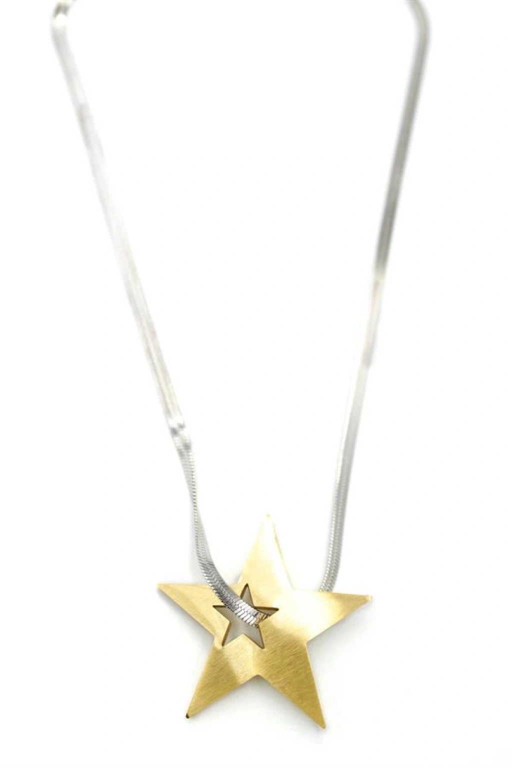 HarmonyAura Pirinç Gümüş Renk Yıldız Model Kadın Kolye